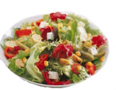Göbek marul, K.Lahana, havuç, mısır, dana jambon, kaşar, yeşil zeytin, domates, salatalık